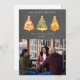 Ilustración de árbol rebanadas de pizza con forma de árbol de Navidad coronadas con estrellas. El fondo está inspirado en una pizarra. Personaliza el nombre, año y foto.