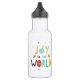 Esta linda botella de agua Joy to the World presenta muchos colores e imágenes de estrellas, corazones, copos de nieve, hueso, un árbol de Navidad y adorno. Una botella de agua alegre para la temporada de Navidades.