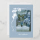 ¡Los diseños de "poinsettia alegre" rojo y dorado están ahora disponibles en azul! El aspecto anacrónico de las flores y de los pétalos a través de la vista es una imagen delicada, y hace un agradable borde alrededor de la foto de tus Navidades. Envíe su foto con una tarjeta de vacaciones icónica - ¡tenga unas vacaciones benditas!