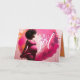 Celebra la alegría de una nueva bebé con nuestra Tarjeta de Embarazo Étnica "Radiant Joy". Una impresionante silueta de una mujer embarazada orgullosa con un hermoso afro toma el centro del escenario contra un vibrante fondo de salpicaduras rosadas. Los colores vibrantes capturan la energía y la importancia de este momento trascendental. El vientre redondo no es solo un símbolo de vida, sino un testimonio de la belleza de la maternidad, celebrada a través del cabello afro natural, un guiño a la herencia negra y la esencia de la autenticidad.