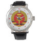 Usa una parte del oscuro pasado profundo de Alemania con este elegante reloj de pulsera de Alemania del Este. El reloj de pulsera tiene el viejo escudo de armas de la República Democrática Alemana sobre un fondo blanco con números rojos oscuros. El reloj puede ser personalizado: estilo, colores, tamaño, etc. Para más temas como este, visita: www.zazzle.com/azorean*.