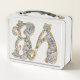 Sus iniciales pueden ser monogramadas en un lado, sólo hágannos saber qué dos letras o números A a Z en funda superior e inferior en inglés, de cero a 9 para usar. Se están poniendo a disposición varias versiones del alfabeto aquí, así que encontrarás una gran variedad de opciones de diseño con la categoría Cat a la que sigo agregando, Whew! ¡Tantos gatos! Tu elección de la camada. Y más en camino. Gatos resultantes de mi tipo de letra Catphalbet, caracteres caligráficos artesanales de Art Nouveau Feng Shui cada uno con una actitud única. Un alfabeto gato sin parangón seguro. Por otro lado, un fascinante gato de abulón en una serie de tonalidades metálicas de profundidad con joyas de carácter arte auténtico tridimensional mira hacia atrás con cariño. Los gatos están decorados con brillantes metales y perlas, con piedras preciosas y deslumbrantes. Bloquea esta lonchera si obtienes una. Lo garantizo como el tipo de arte que la gente roba, que vale la pena, mejor consigue uno en cada tipo. ¡Gracias por ayudar literalmente al artista a alimentar a los gatos!
