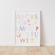 Alentar a aprender todos los días con el poster de nuestra ABC arcoiris. Decore una pared en el vivero, la sala de juegos o el dormitorio de su pequeña habitación con la letra moderna del alfabeto.