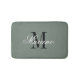 Alfombra de baño verde salvia con monograma de nombre elegante. Decoración de baño elegante. Diseño monogramado elegante. Tipografía de guión elegante con letra inicial de nombre personalizada. Bonita decoración interior chic para el baño.