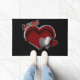 Alfombra de bienvenida con fondo negro y corazón m