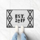 Perfecta para recién casados o nuevos propietarios. Esta alfombra de puerta de baldosa falsa negra y blanca Est. 2019 es un regalo ideal para una propuesta de matrimonio, boda o inauguración de casa. Disfruta del estilo clásico pero trendy de esta alfombra de baldosas hexagonales.