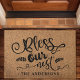 Alfombra de bienvenida personalizada de arpillera falsa Bendice Nuestro Nido