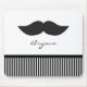 Alfombra de ratón de computadora de bigote rayas blancas y negras. Agregar texto o dejar en blanco.
