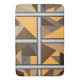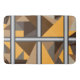 Alfombras de baño barred. Barred es un diseño abstracto creado por Anna M. Asbury y consiste en formas marrones, naranjas, beige y grises detrás de barras de gradiente plateadas.