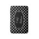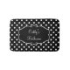 Alfombras de baño monogramadas femeninas que incluyen un patrón de lunares elegante en negro y blanco y un emblema de monograma que puedes personalizar. Diseñadas para un baño de señoras o niñas, puedes decorar con tu propio estilo personal.