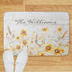Presentamos nuestro Watercolor Rústico Amarillo Sunflower Garden Madera Mat de Baño . Con un elegante ilustracion acuarela de prado de girasol con fondo de madera blanca, dé un acento campestre a su decoración. Personaliza el texto y hazlo tu!