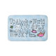 La cita de esta alfombra de baño para el ávido lector proviene de un poema de Lewis Carroll en su libro "Alicia en el país de las maravillas". The Mad Hatter lo recita en el tea fiesta: Arriba por encima del mundo vuelas / Como una bandeja de té en el cielo. El diseño de la tipografía luce un vaso de agua, una tetera y una bolsita de té, con vapor giratorio, todo ello flotando sobre un cielo azul claro y turbio.