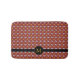 Estera de baño de personalizable con patrón de perros azul y amarillo sobre fondo rojo oscuro + banda negra y etiqueta redonda para Monograma. Puede cambiar fácilmente el monograma (fuente, color, tamaño y posición) haciendo clic en el botón personalizar. Perfecto para el Año Nuevo Chino del Perro 2018 o cumpleaños (personas nacidas en el año Perro). No olvides toda la colección.