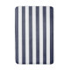 Estera de baño personalizado con un patrón de rayas precoces en colores azul marino y blanco. Utilice las herramientas de diseño para elegir cualquier color de fondo, agregar su propio texto o subir fotos para crear un diseño único que coincida con cualquier decoración de baño.