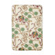 Art Nouveau-inspired floral design with swirling gold vines, green circular leaves, and red petals on a cream background, creating an elegant pattern.