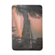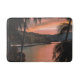 ¡Un montón de palmeras isleñas! Tantas palmeras que no puedo contar se sientan en esta isla tropical al atardecer. Una majestuosa puesta de sol rosa y naranja ilumina el cielo en esta pintoresca foto de la isla de la tarde.