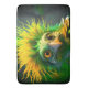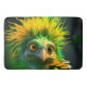 Esta alfombra de baño tiene un pájaro verde pardo.