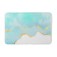 Una alfombra de baño con un diseño veraniego sereno. Imagen color turquesa / agua verde con un borde dorado ondulado. Elegante y encantador.