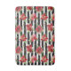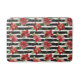 Esta bonita alfombra de baño a rayas blancas y negras tiene grandes flores de poinsettia roja con hojas verdes, conos de pino marrón y bayas rojas.