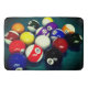 Esta alfombra tiene bolas de billar retratadas en ella.