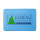 Estera de baño con bandera de la ciudad de Juneau, Alaska; bandera azul con ilustracion estilizado de árboles
