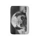 Fotografía blanco y negro de un pequeño barro amasado muy adorable con los oídos aterciopelados y los ojos marrones conmovedores.