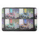 El colorido trabajo de arte en esta gran Mat Bath se hizo a partir de una fotografía original de ZoeSPEAK de una bicicleta estacionada afuera de una tienda en Key West, Florida. La ropa de la tienda cuelga en la puerta abierta detrás de la bicicleta. La foto se hace en cuatro combinaciones de colores: bicicleta roja, bicicleta azul, bicicleta verde y bicicleta amarilla, con los correspondientes colores de la ropa. El conjunto está decorado en tonos malva y grises de oliva, y el fondo es negro de mármol.