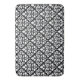 El damasco de la voluta y de la hoja en un vintage diseña el modelo, con el detalle blanco en un fondo negro.