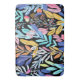 Un colorido patrón floral con hojas y flores tropicales, creando un diseño vibrante y animado