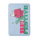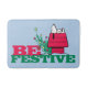 Disfrute de este diseño navideño de Peanuts con Snoopy durmiendo en su casa de perros al lado de su árbol de Navidad.