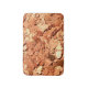 Fotografía de copos minerales de cobre de oro rojo impresos en los bordes de la alfombra. Derechos reservados 2017 de. Margaret E. Cmelik.