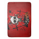 Calabaza Mágica y Diversión Humana. En medio de un oscuro cementerio, un alegre esqueleto personalizado se alza sobre un montón de piedras templadas. El esqueleto, con sus extremidades óseas y su maliciosa sonrisa, lleva un impresionante arco rojo alrededor de su cuello y ha apuntado cuernos del diablo que le dan una expresión juguetona pero traviesa. En su mano derecha, sostiene orgullosamente una linterna en forma de calabaza brillante sobre un palo largo, cuya cálida luz irradia suavemente en el entorno. El fondo del diseño es un rojo vibrante que subraya el espíritu festivo de Halloween.
