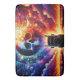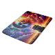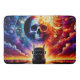 Esta alfombra de baño tiene un cráneo artístico y un semircamión retratado sobre ella.