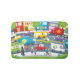 Artista: Marcus Cutler | ilustracion de una concurrida calle y parada de autobús con peatones y coches, camiones y tiendas y un niño en bicicleta