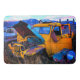 Esta alfombra tiene un camión viejo retratado.