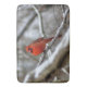 Un cardenal rojo brillante agrega un toque de color en un día espantoso y nevado.