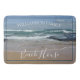 El personal del Beach House Ocean bath mat ofrece una fotografía tranquila de las olas azules y blancas, los cielos azules y la arena dorada de la costa de Melbourne, en Australia. Haz de tu casa una casa con esta alfombra de baño tranquila. El texto está escrito en blanco y moderno, lo que es personalizable para que puedas añadir tu propio nombre de familia.