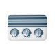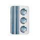 Diseño náutico con conchas azules y decoración de rayas sobre fondo blanco