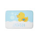 ¡Quack, cuac! La alfombra Ducky With Blue Heart Bath Mat diseñada por Enchantsofisticada Design Company presenta un lindo pato amarillo con un corazón azul en su ala. El pato amarillo de goma flota en burbujas de baño. ¡Personaliza tu elección de nombre! Esta alfombra de baño le dará un toque divertido a la decoración de los cuartos de baño de los niños.