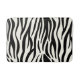 Una alfombra exótica de piel de cebra para un cuarto de baño con temática de cebra. Líneas blancas negras y cursiladas que crean una atmósfera salvaje clásica.