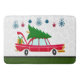 Alfombrilla De Baño Coche rojo retro que lleva un árbol de Navidad