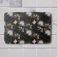 Colorido y hermoso pastel indonesio floral con mariposas, hojas diseños báticos patrón impecable color negro alfombra de baño