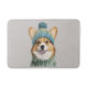 Alfombrilla De Baño Corgi acogedor en el engranaje de invierno