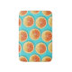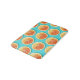 Un patrón de rodajas naranjas frescas y jugosas en tonos profundos de naranja de mandarina y naranja rojo, con una textura acuarela para darle ese aspecto recién cortado. Están colocadas sobre un fondo azul brillante para dar un aire luminoso y veraniego.