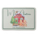 Esta alfombra de baño de personalizado Navidad ofrece un bonito ilustracion acuático de gente de pan de jengibre. Un pequeño hombre de pan de jengibre está parado frente a su casa de pan de jengibre. A la izquierda hay un árbol decorado con bonito. El fondo es un verde sabio suave con texto marrón.