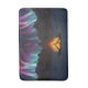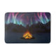 En un valle cubierto de nieve, en una noche helada en los muertos de invierno, una hoguera salta hacia arriba para reflejar las luces del norte que llenan el cielo sobre las montañas lejanas.