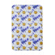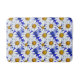 Tapón de baño en un patrón acuarela de margaritas blancas con centros amarillos dorados, sobre un fondo en tonos de azul deno