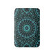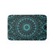 Bring vibrant, calming energy into your home with this eye-catching bath mat. The design features an intricate mandala pattern with a mesmerizing radial symmetry in shades of turquoise and teal against a dark, nearly black background. The mandala design is made up of delicate floral motifs and flowing lines that radiate outward like petals, creating a sense of depth and motion.