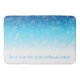 "Deja que nieva como tu alfombra de baño" es una leyenda que literalmente refleja el diseño de la moqueta en una combinación azul y blanco con copos de nieve estilizados para una agradable atmósfera estilizada de tu interior. Puede cambiar o quitar el título.