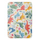La imagen es un patrón diverso y colorido, sin fisuras, con una variedad de dinosaurios personalizados en diferentes poses. Los dinosaurios están pintados en colores vivos como el rojo, el azul, el amarillo, el verde y el naranja. Están rodeadas de flores estilizadas, hojas y follaje en una paleta vibrante. El fondo es blanco, lo que hace que los dinosaurios y las plantas salgan a la luz. El estilo general es alegre, infantil y caprichoso, lo que sugiere un diseño destinado a los productos infantiles o textiles.